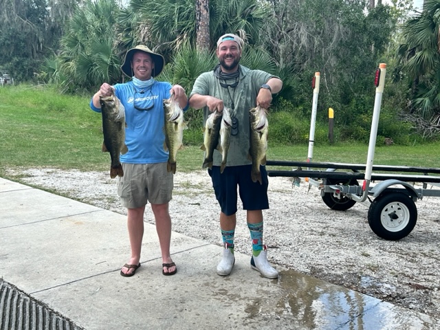 Second Place with 5 bass weighing 23.96 pounds goes to Matt and Mike
